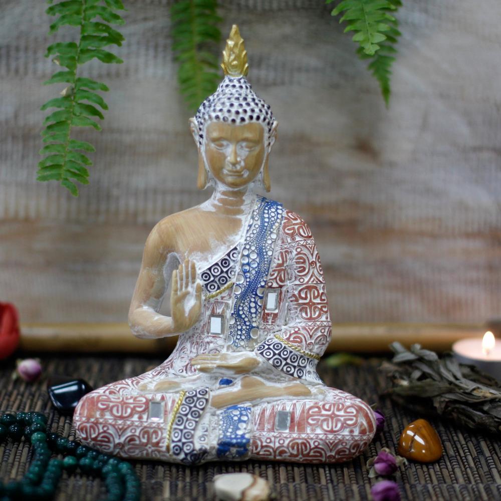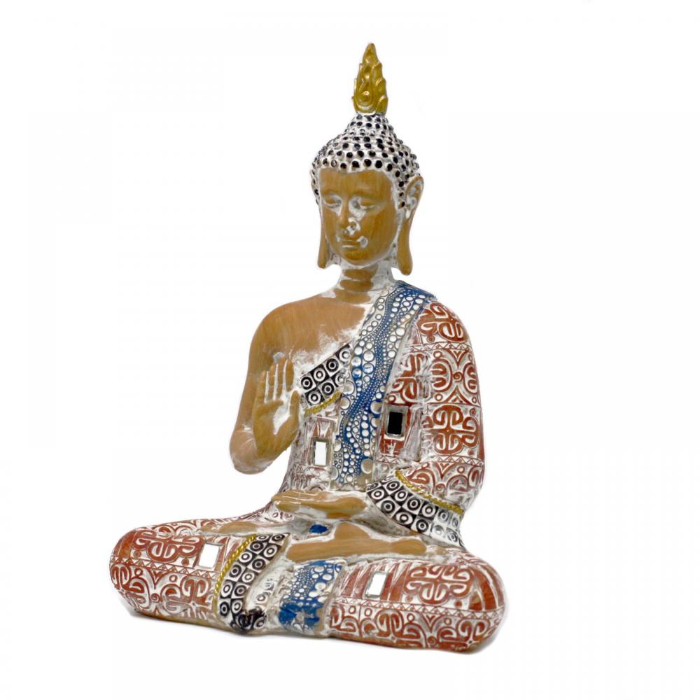Thai Buddha - Protection - Terraccotta & Sky Blue 20 cm